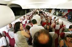 Na entrada do grande pssaro voador, l esto os atrapalhados com as bagagens de mo sem saber o que fazer com as mesmas, parando a fila, deixando as pequenas porcarias no meio do corredor, impedindo a passagem. Com frequncia, esto os folgados que usam mais espao que devem, deixando outros passageiros sem espao. J na entrada, cheiro de suor e sovaco. Depois da decolagem, acaba-se qualquer emoo, a espera interminvel dentro do monstro que s se move quando estou no banheiro. No h posio pra dormir, reclino a poltrona os 2 cm que me de direito e parece que tudo continua igual, com exceo do cheiro de urina do banheiro prximo. A TV da poltrona no funciona, um bebe chora frente, crianas brigam atrs, algum entra em panico ao lado de um jovem gordo que ocupa 1 poltrona e 1/2, e desculpem se ofendo algum leitor, mas obesidade num mundo onde pessoas morrem de fome, deveria ser considerado crime!